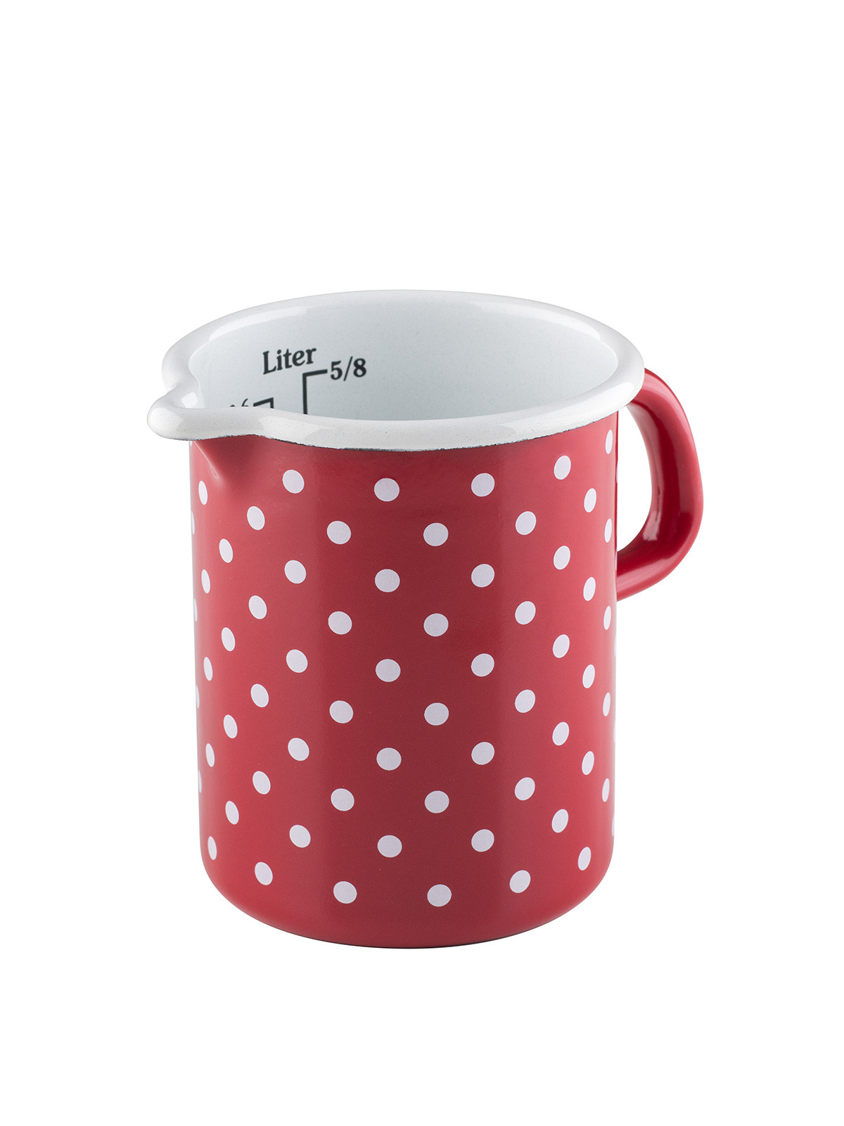 Specificaties emaille maatbeker  0,5 liter rood met witte stippen